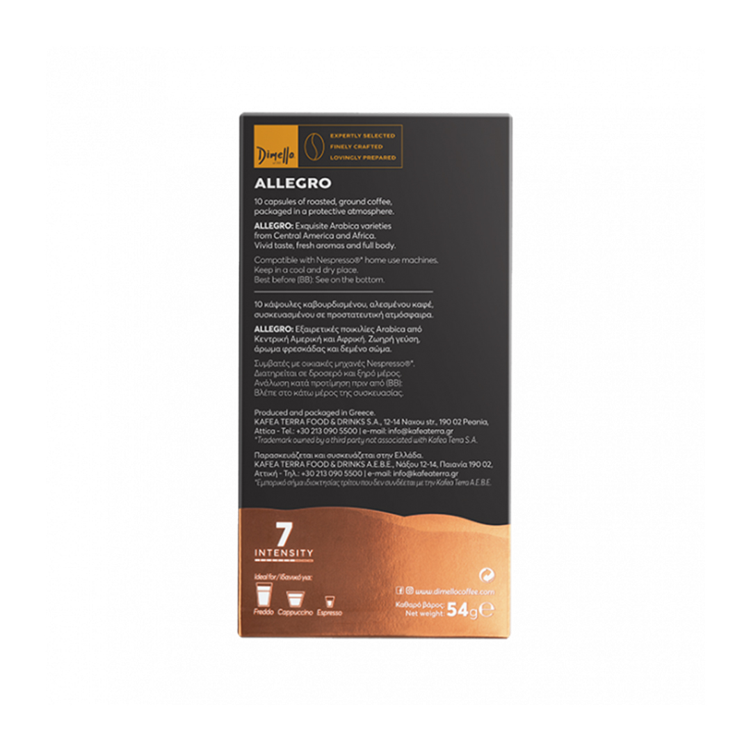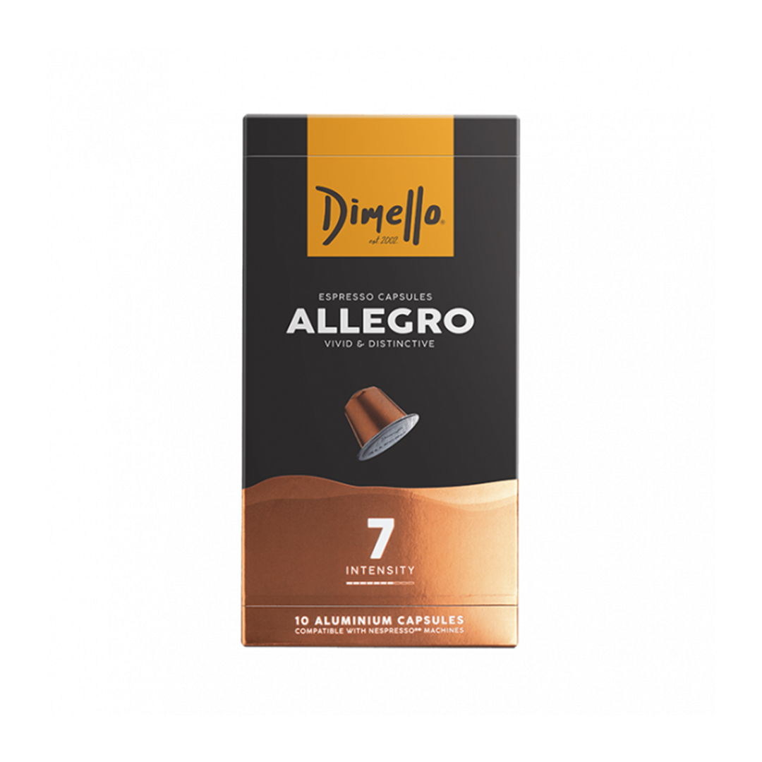Izuzetno ukusan blend punog tela, voćnih aroma i snažne završnice. Arome etiopske kafe, u kombinaciji sa voćnom intenzivnošću kafe iz tropske Kolumbije i odabranim sortama Arabike iz Hondurasa, stvaraju Allegro blend. Upravo ta kombinacija daje Allegru njegov sjaj i jedinstvenost. Uživajte kao espresso; idealan je i za kapućino i freddo.