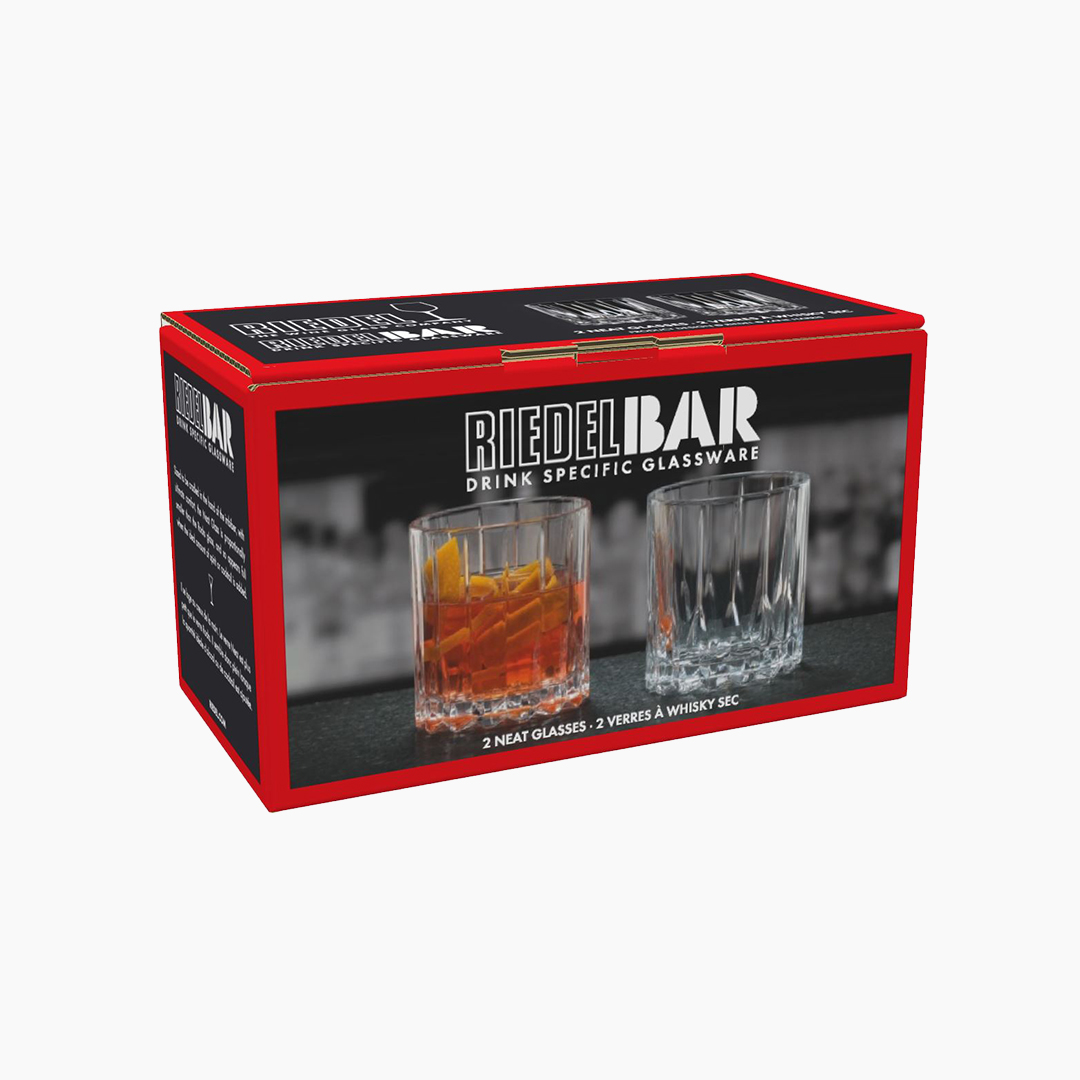 Neat čaša iz najnovije revolucionarne kolekcije RIEDEL Bar Drink Specific Glassware dizajnirana je u manjim proporcijama za neat pića i koktele sa fokusom na destilat (spirit-forward). Savršeno leži u dlanu za maksimalnu udobnost i kontrolu, ističući čist aromatski profil viskija, ruma, konjaka i ostalih žestokih pića. Idealan izbor za bar i kućnu upotrebu, Neat oblik pomaže da se arome koncentrišu i dožive u punoj kompleksnosti.