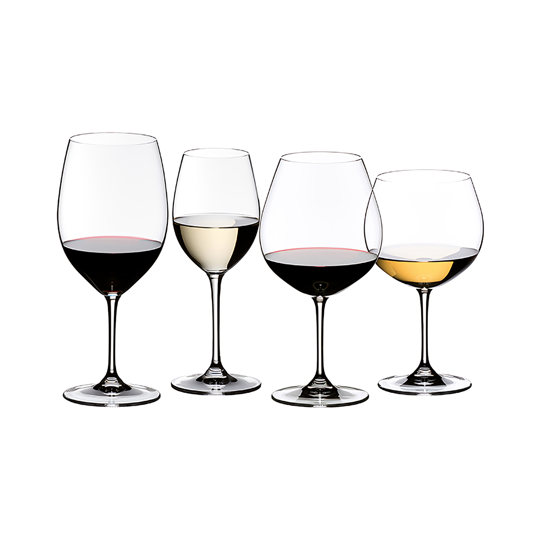 RIEDEL Vinum Tasting Set sadrži 4 čaše iz kolekcije Vinum: Cabernet/Merlot, Pinot Noir, Sauvignon Blanc i Chardonnay.