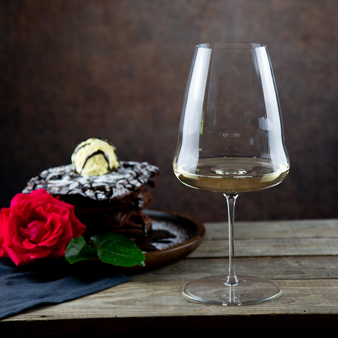 Poseban dizajn sa ravnim dnom naglašava intenzivne cvetne arome, sveže voćne tonove i izraženu mineralnost, dok uravnotežuje kiselost i slast, bez naglašavanja hrastovih nota. Oblik čaše omogućava da se buke razvije u punom intenzitetu, pružajući slojevito i elegantno iskustvo degustacije.